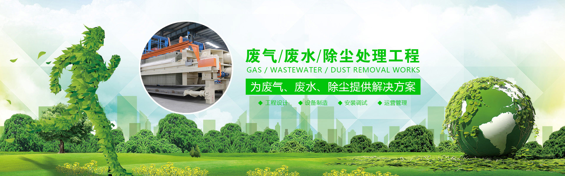 公司業務范圍主要有:固體廢物處理(禽畜無害化處理、焚燒爐、固液分離設備等)、污水設備(農村污水、城鎮污水連片治理、造紙、食品、屠宰、養殖、紡織印染、石油化工、煤礦、醫療制藥、大中小型污水處理廠等污水工程、設計、施工及設備制造)、大氣治理(車間煙塵、煙氣脫硫、脫硝除塵設備等)。